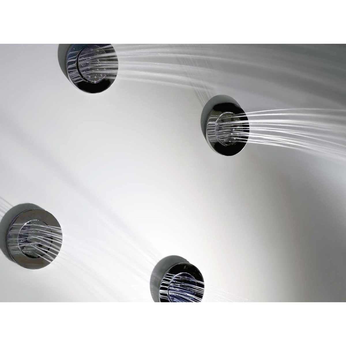 Met zijn stijlvolle ronde vorm en hoogglans Chroom afwerking, geeft deze inbouw bodyjet een moderne en elegante uitstraling aan uw badkamer. U kunt de hoek van de waterstraal naar wens aanpassen dankzij de kantelbare functie. De thermostaatkraan zorgt voor een comfortabele watertemperatuur en de bodyjet wordt geleverd met een slang en een houder voor eenvoudige installatie.