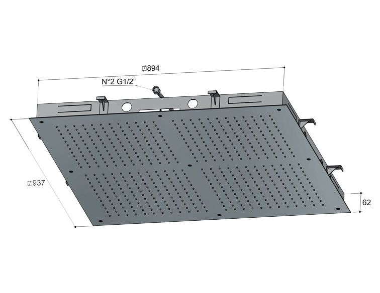 HotBath Mate inbouwhoofddouche 90x90cm vierkant nikkel Geborsteld
