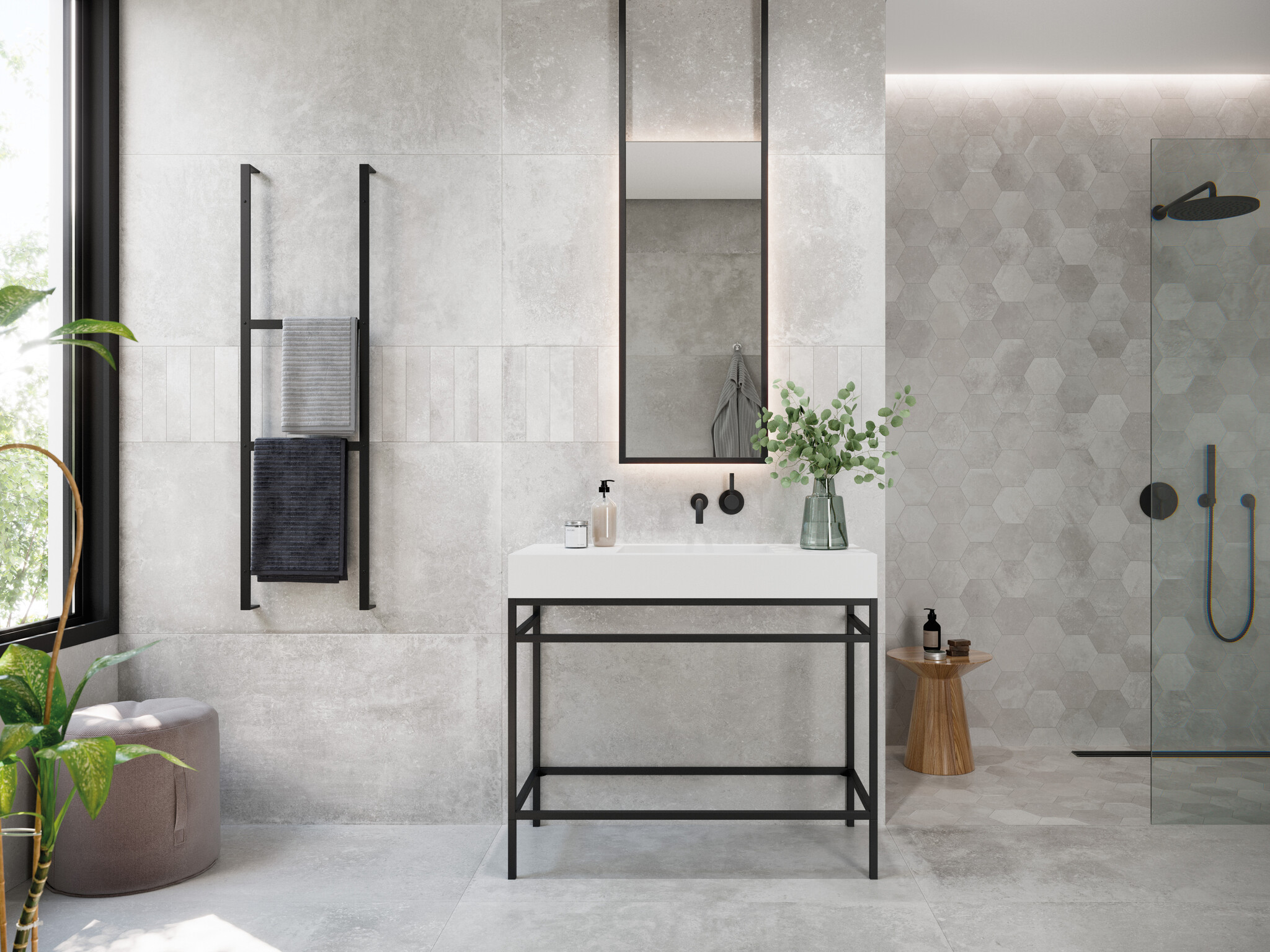 Breng een tint van elegantie in uw huis met de Midtown Pearl R10 N-Plus tegels, die een subtiel grijs palet combineren met hoge functionaliteit.