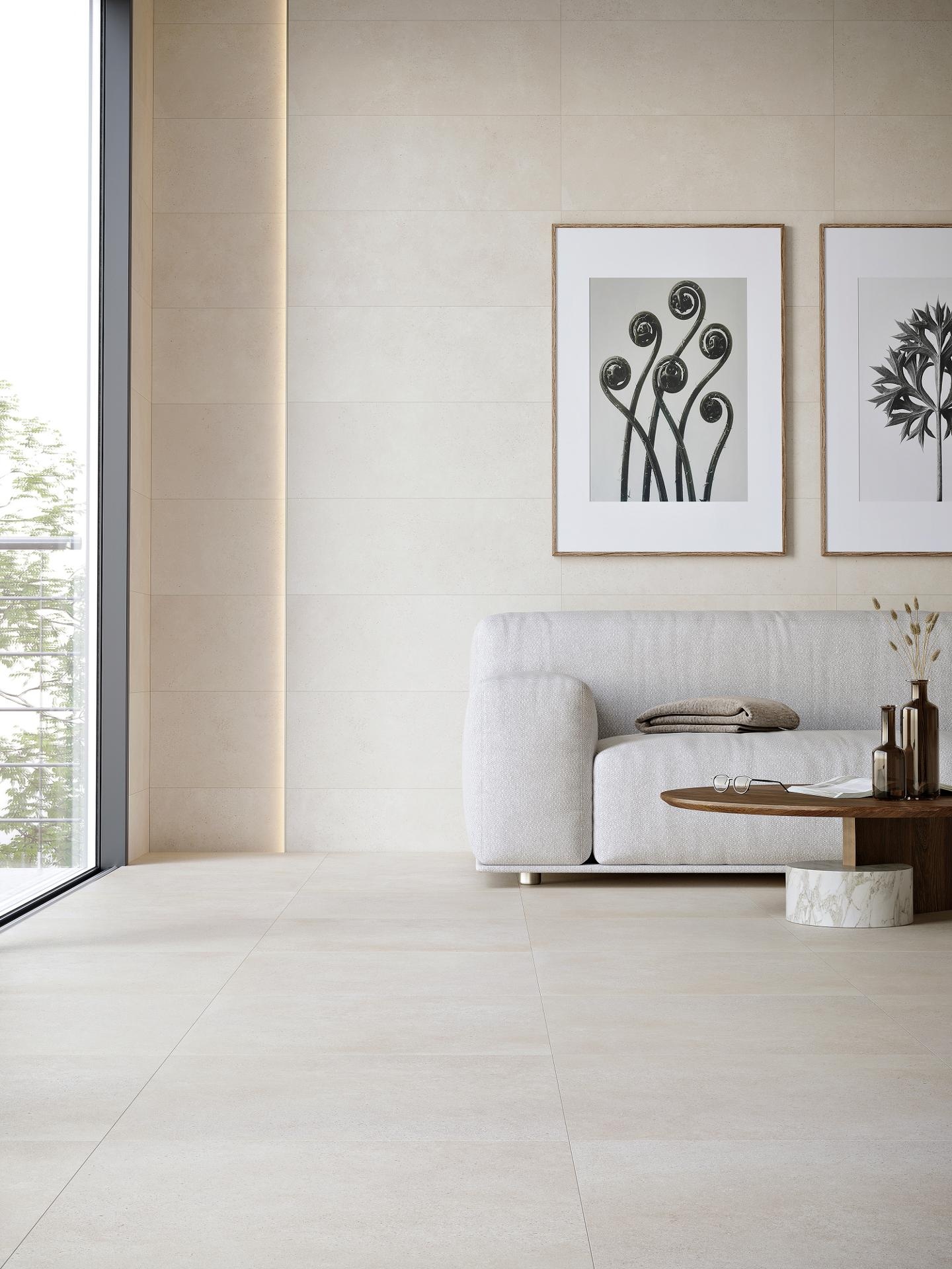 Stel je voor hoe deze tegel uw woonkamer kan transformeren tot een serene oase. De warme, neutrale kleuren creëren een uitnodigende sfeer en maken het gemakkelijk om te combineren met diverse meubels en accessoires. In de keuken voegt de Vela tegel een vleugje verfijning toe, terwijl hij tegelijkertijd een praktische oplossing biedt met zijn antislip eigenschap, perfect voor een druk huishouden.