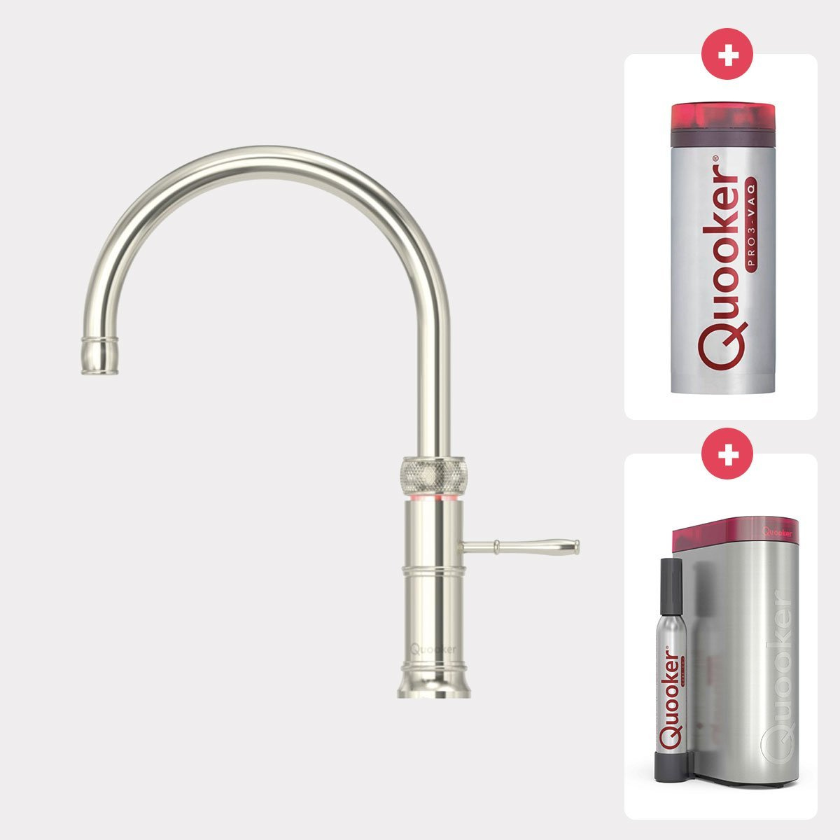 Offerte aanvraag voor Quooker Classic Fusion round kokendwaterkraan opbouw uitloop draaibaar met Pro3 reservoir & Cube reservoir Glans nikkel