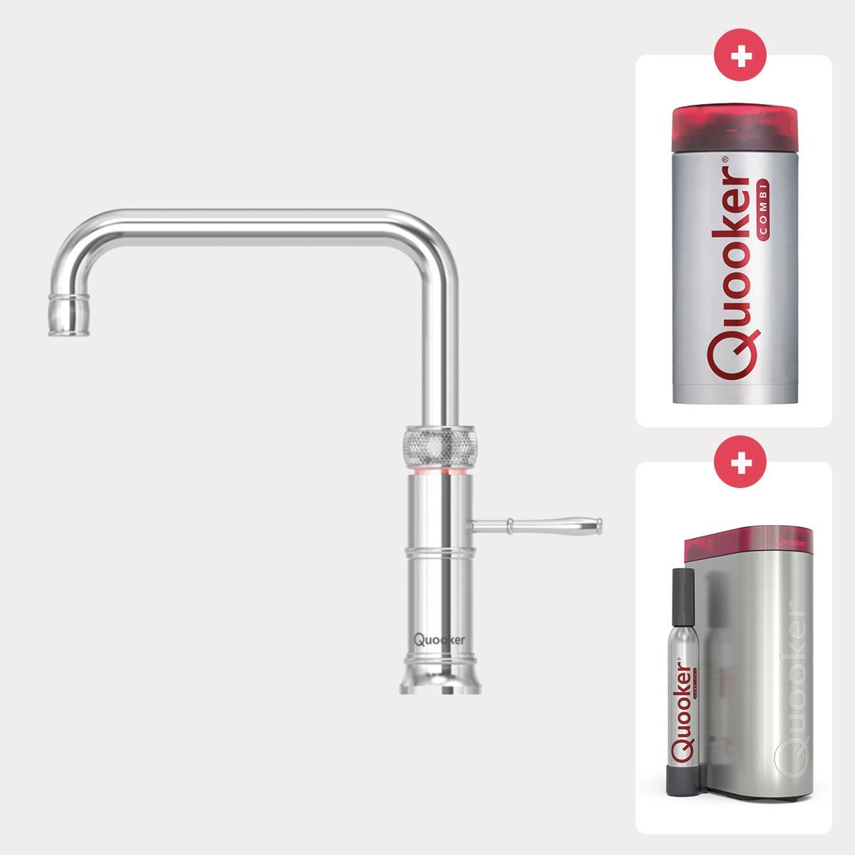 Quooker Classic Fusion square kokendwaterkraan opbouw uitloop draaibaar met Combi reservoir & Cube reservoir Chroom