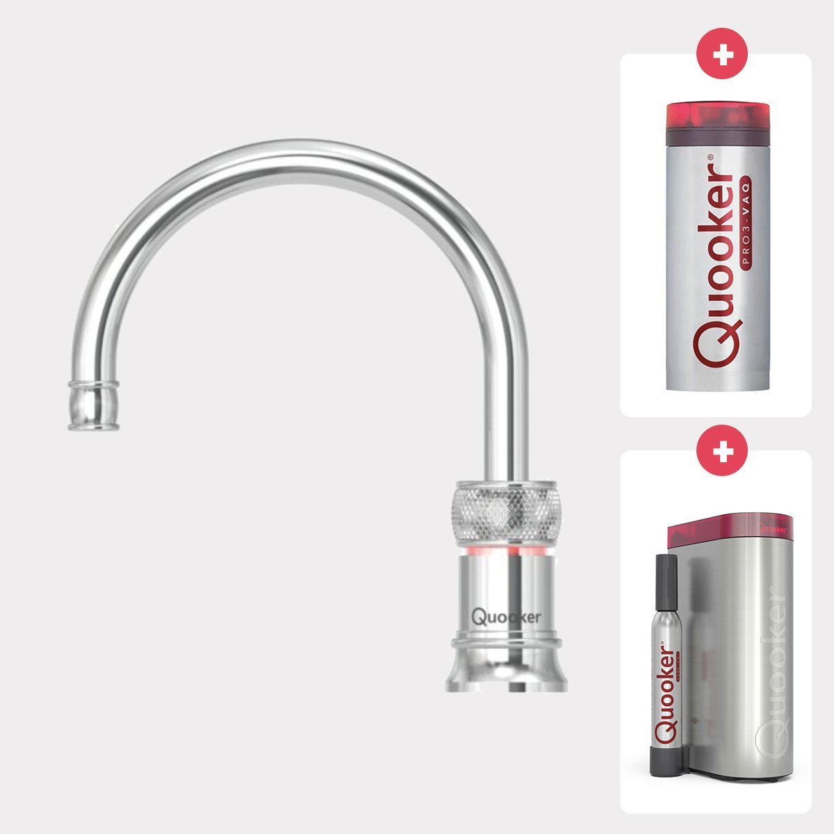 Quooker Classic Nordic Round kokendwaterkraan opbouw uitloop draaibaar met Pro3 reservoir & Cube reservoir Chroom