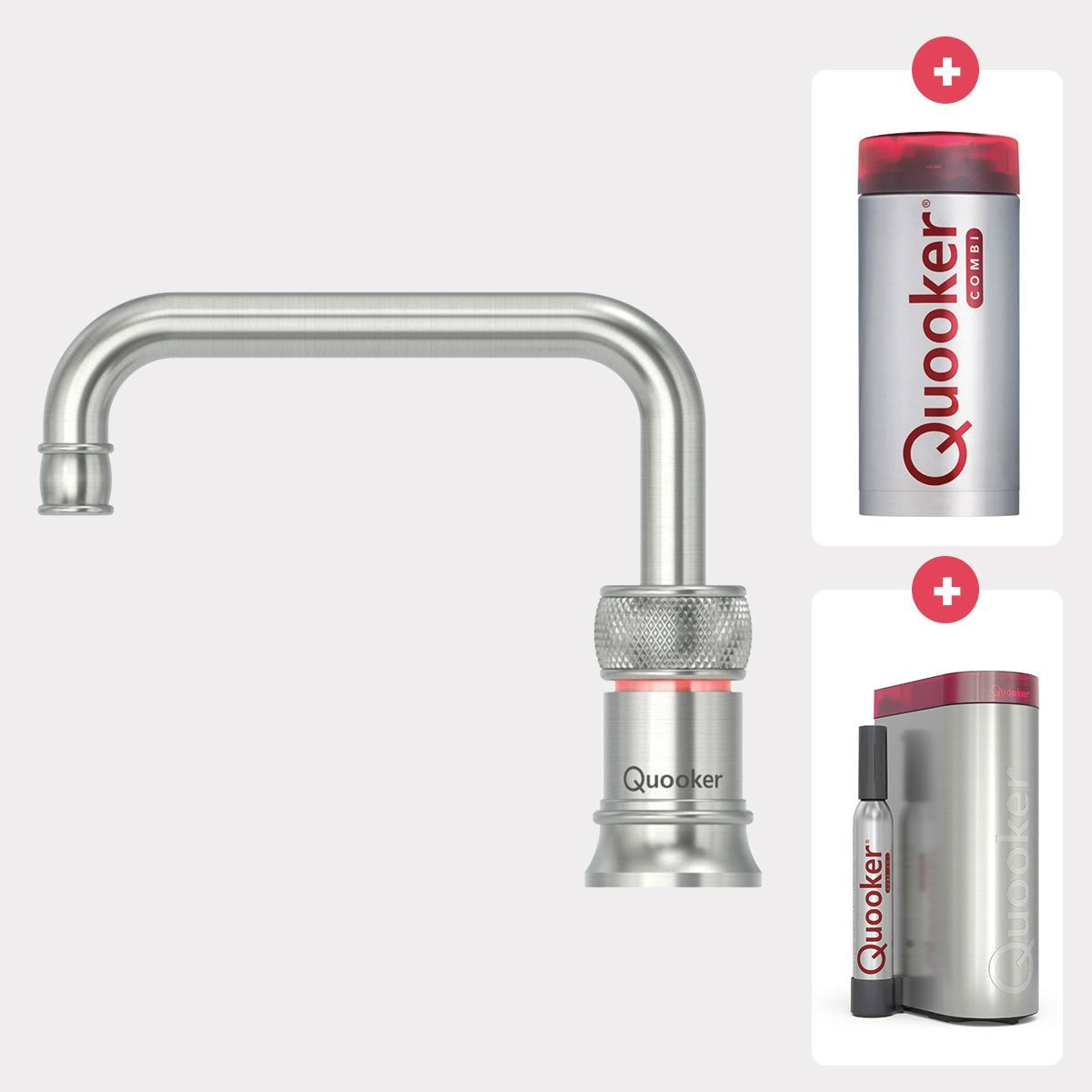 Quooker Classic Nordic square kokendwaterkraan opbouw uitloop draaibaar met Combi reservoir & Cube reservoir RVS