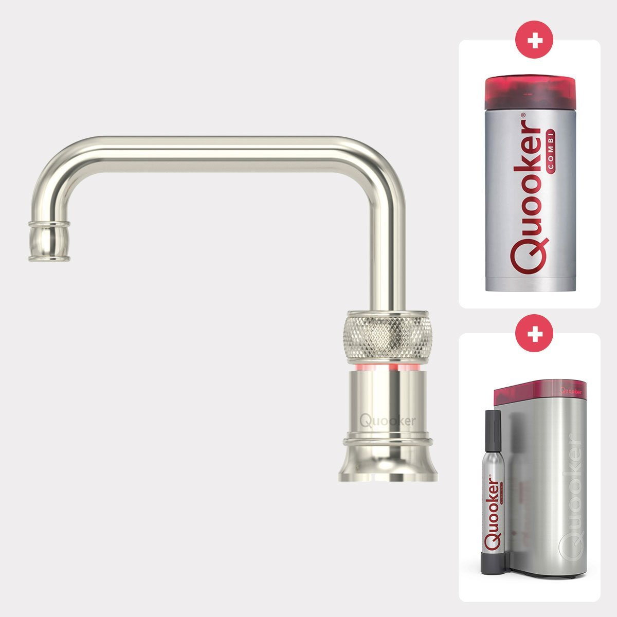 Quooker Classic Nordic square kokendwaterkraan opbouw uitloop draaibaar met Combi+ reservoir & Cube reservoir nikkel glans