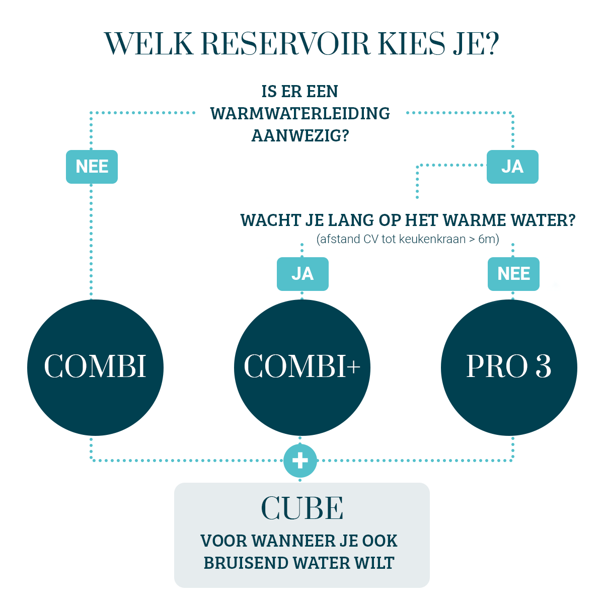 - Loopt er enkel een koud waterleiding naar de keuken en/of maak je momenteel gebruik van een keukenboiler? Dan is de COMBI het meest geschikt.