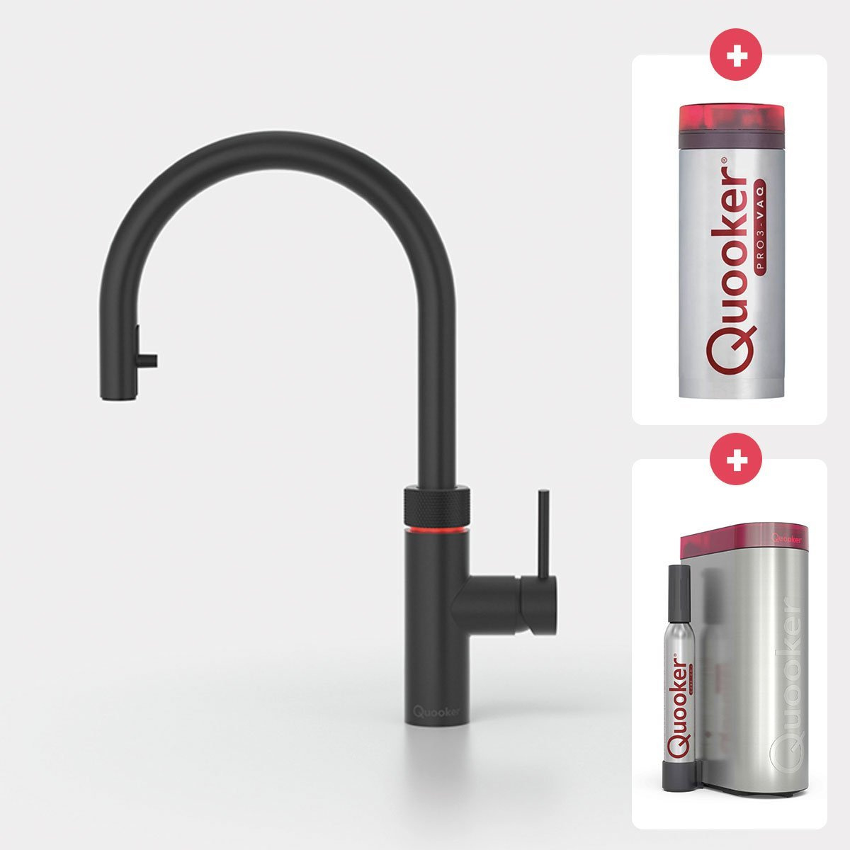 Quooker Flex kokendwaterkraan met uittrekbare uitloop en Pro3 & Cube reservoir in Zwart