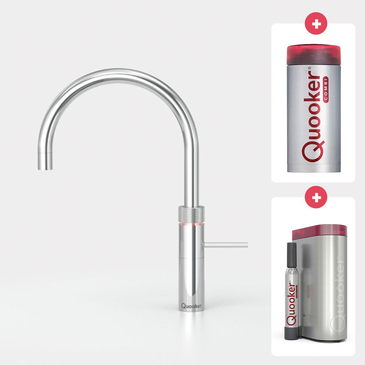 Offerte aanvraag voor Quooker Fusion round kokendwaterkraan opbouw uitloop draaibaar met Combi reservoir & Cube reservoir Chroom