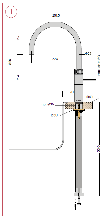 Quooker Fusion round kokendwaterkraan opbouw uitloop draaibaar met Combi reservoir Cube reservoir Chroom: