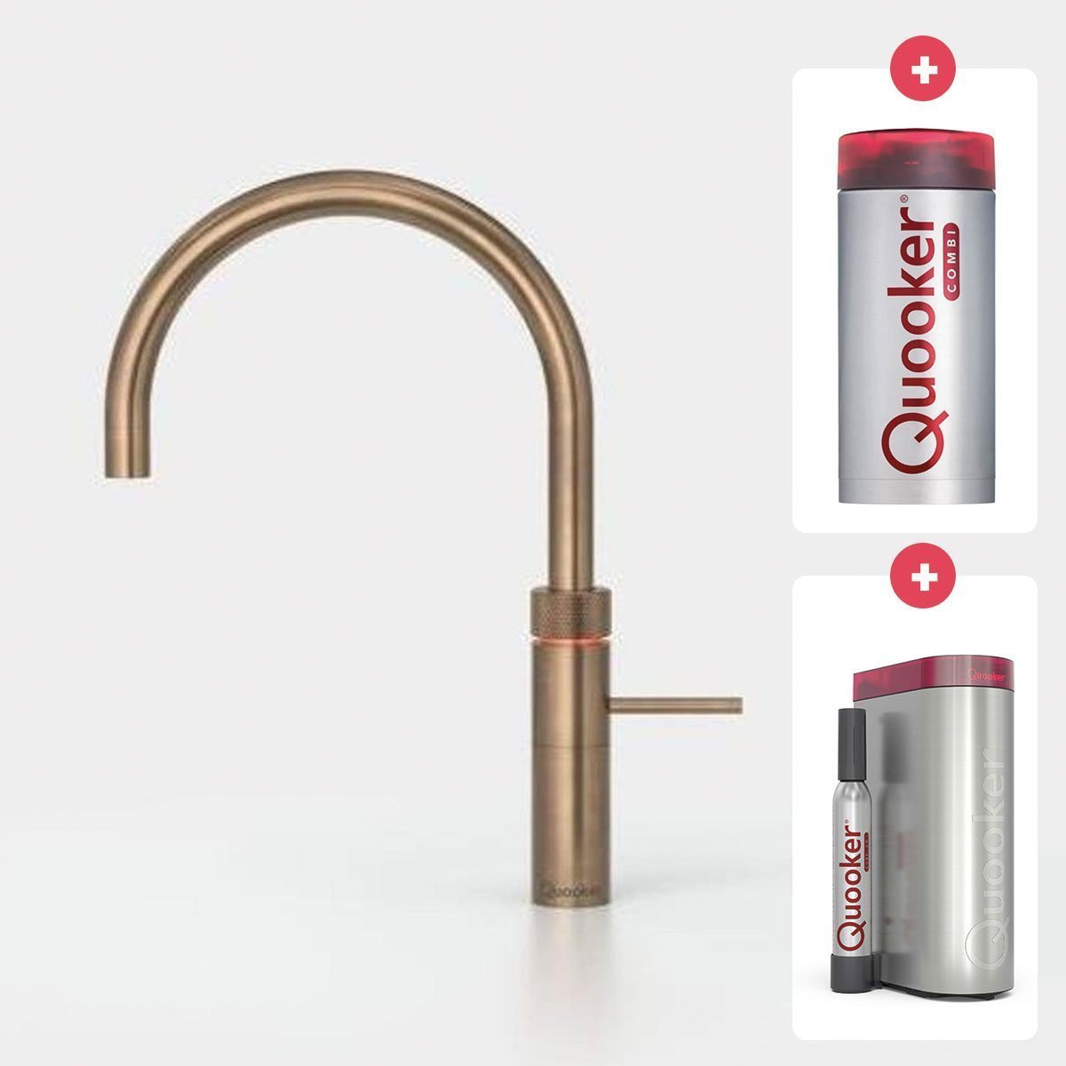 Offerte aanvraag voor Quooker Fusion round kokendwaterkraan opbouw uitloop draaibaar met Combi reservoir & Cube reservoir Messing patina