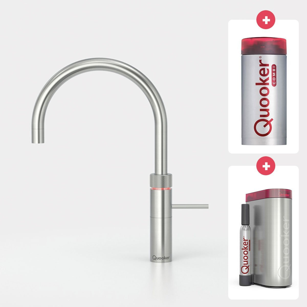 Quooker Fusion round kokendwaterkraan opbouw uitloop draaibaar met Combi reservoir & Cube reservoir RVS
