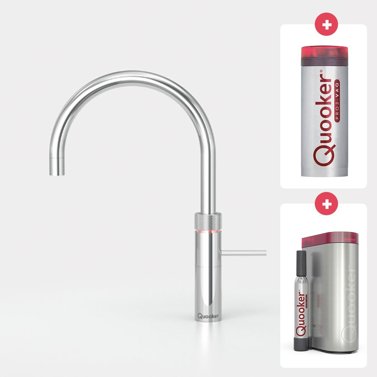 De Quooker collectie bestaat uit drie soorten reservoirs: de PRO3-VAQ voor direct kokend water, de COMBI voor direct kokend en warm water en de COMBI+ voor direct kokend en onbeperkt warm water. De keuze voor een reservoir hangt af van de situatie in jouw keuken. Bespaar geld en help het milieu door te kiezen voor de Quooker Fusion round kokendwaterkraan opbouw uitloop draaibaar met Pro3 reservoir & Cube reservoir Chroom en de Quooker CUBE.