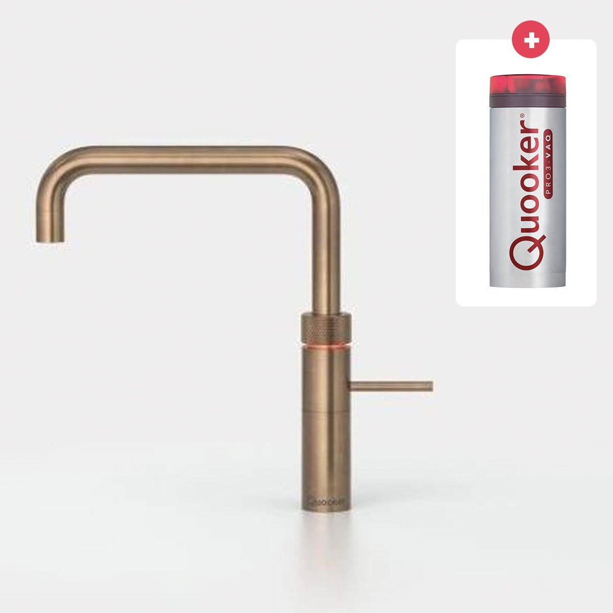 Quooker Fusion Square keukenkraan koud, warm en kokend water met PRO3 reservoir Messing patina