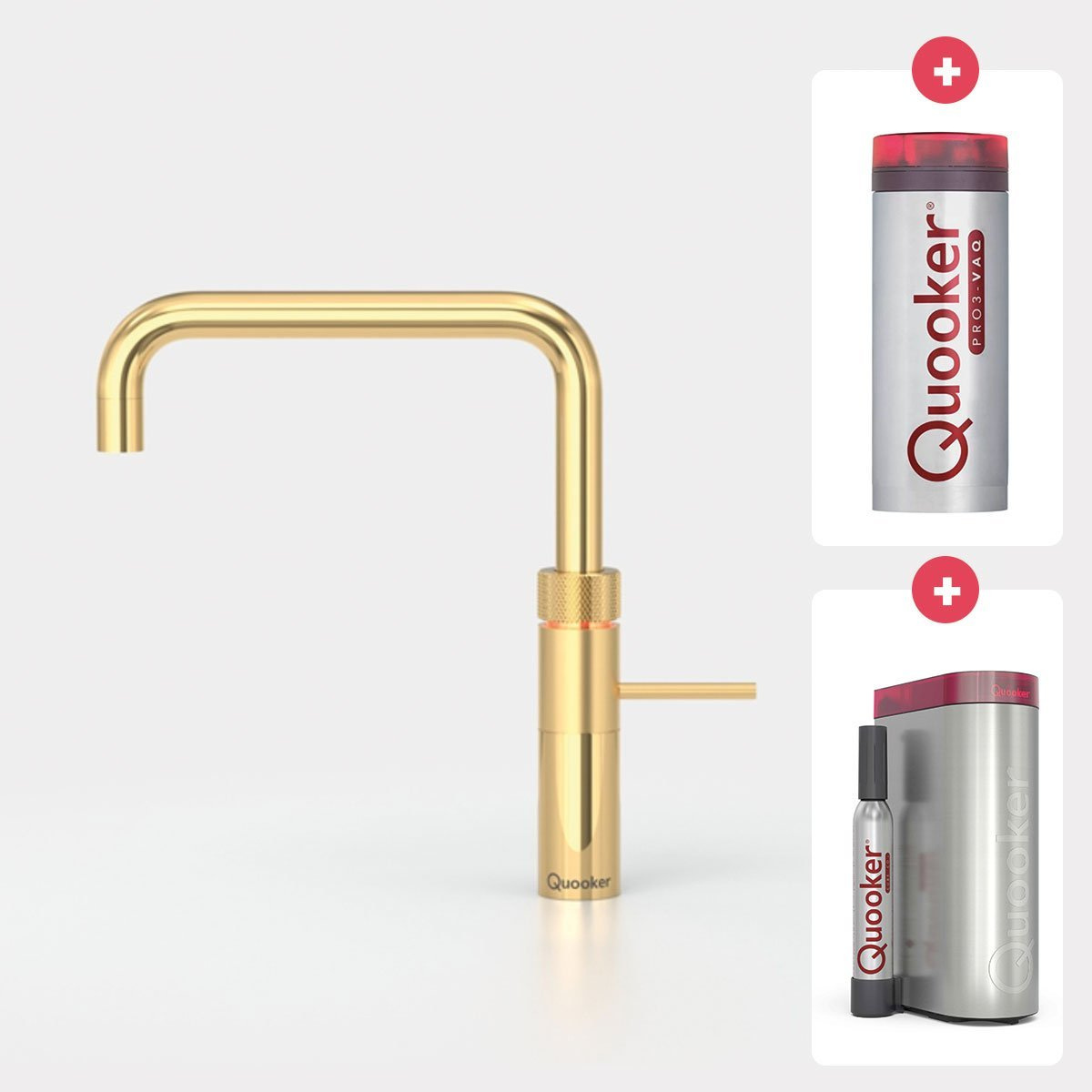 Quooker Fusion square kokendwaterkraan opbouw uitloop draaibaar met Pro3 reservoir & Cube reservoir Verguld