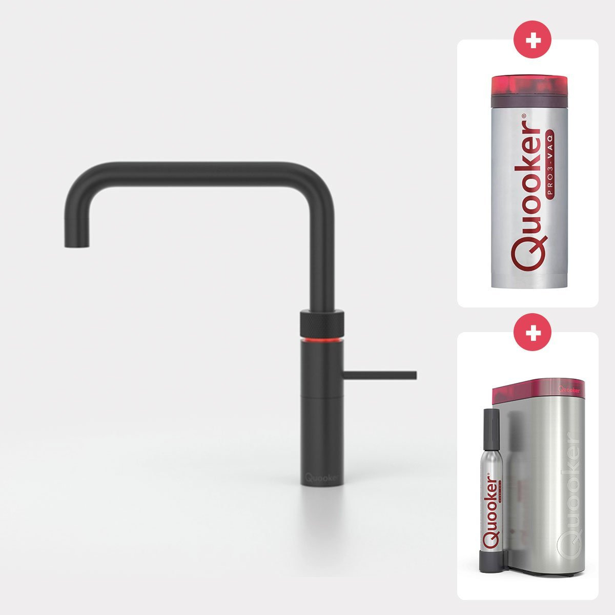 Quooker Fusion square kokendwaterkraan opbouw uitloop draaibaar met Pro3 reservoir & Cube reservoir Zwart