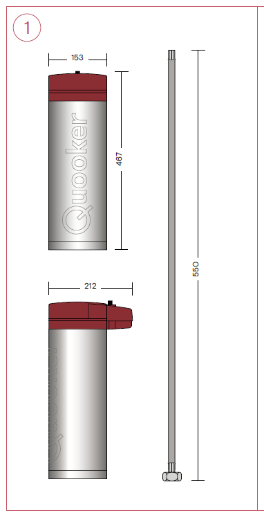 Het reservoir heeft een afmeting van 40 cm in hoogte, 15 cm in diepte en 15 cm in breedte en heeft een aansluitwaarde van 1600W. Het levert alleen kokend water, met een inhoud van 3 liter bij 100°C. Het stand-by verbruik kost slechts 10 watt en het reservoir is aangesloten op de koudwaterleiding. Het is net zo zuinig als de COMBI en COMBI+ reservoirs van Quooker.