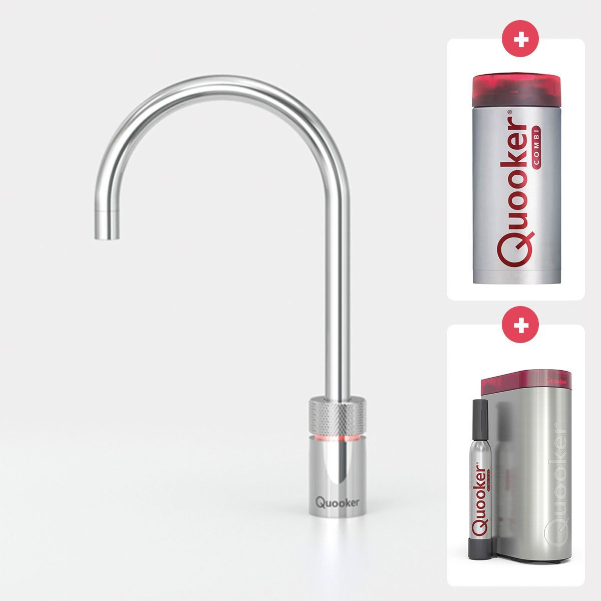 Quooker Nordic Round Kokendwaterkraan opbouw uitloop draaibaar met Combi Reservoir & Cube Reservoir Chroom