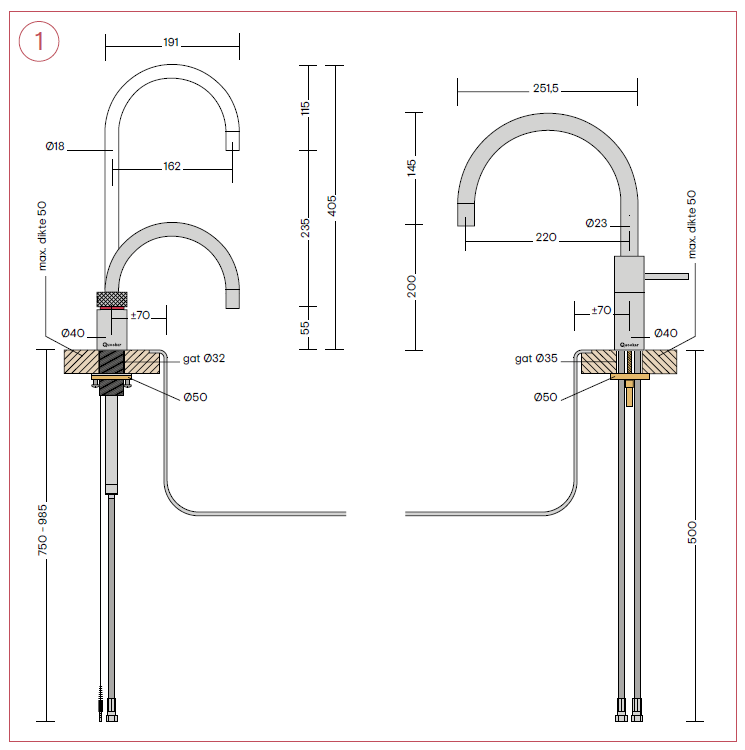 Quooker Nordic Round Twintaps met COMBI reservoir RVS