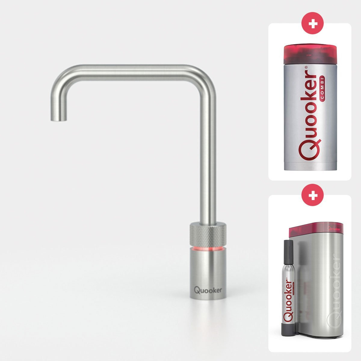 Quooker Nordic square kokendwaterkraan opbouw uitloop draaibaar met Combi reservoir & Cube reservoir RVS