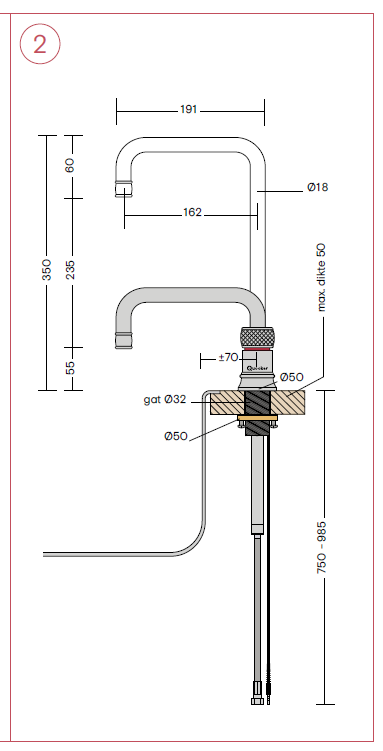 Quooker Nordic square kokendwaterkraan opbouw uitloop draaibaar met Combi reservoir Chroom