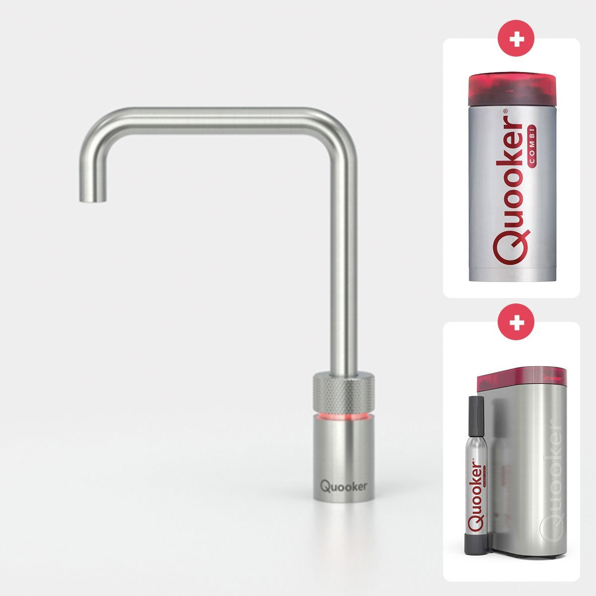 Quooker Nordic square kokendwaterkraan opbouw uitloop draaibaar met Combi+ reservoir & Cube reservoir RVS