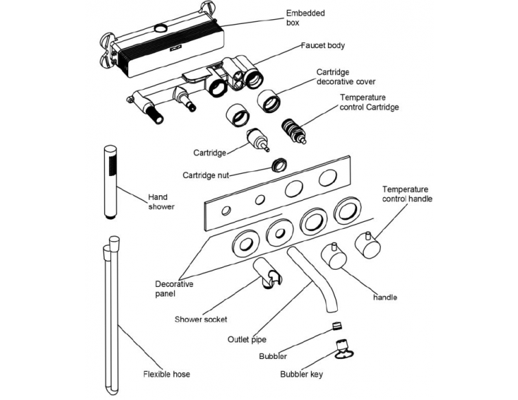 Regn complete thermostatische badinbouwset, Chroom - 15002CR