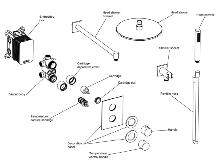 De set is verkrijgbaar in zes verschillende kleuren; Chroom, geborsteld nikkel, geborsteld goud, Geborsteld koper, Mat Zwart en gun metal black. Hierdoor passen ze in meerdere badkamerstijlen. De hoofddouche heeft een diameter van 25 centimeter en de staafhanddouche is 18,5 centimeter.