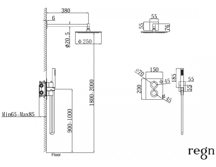 Deze Regn complete thermostatische regendouche inbouwset, uitgevoerd in de kleur Mat Zwart is minimalistisch vormgegeven. De inbouwset heeft een rechthoekig bedieningselement. Bij deze strakke inbouwset zijn de buizen weggewerkt in de muur.