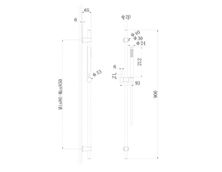 De glijstang is verstelbaar van 80 tot 85 centimeter en ook het glijstuk kan op de gewenste hoogte geplaatst worden. De staafhanddouche is 21,2 centimeter en heeft een diameter van 2,4 centimeter. Combineer de glijstangset met Regn accessoires en toebehoren in dezelfde kleur voor een mooi geheel.