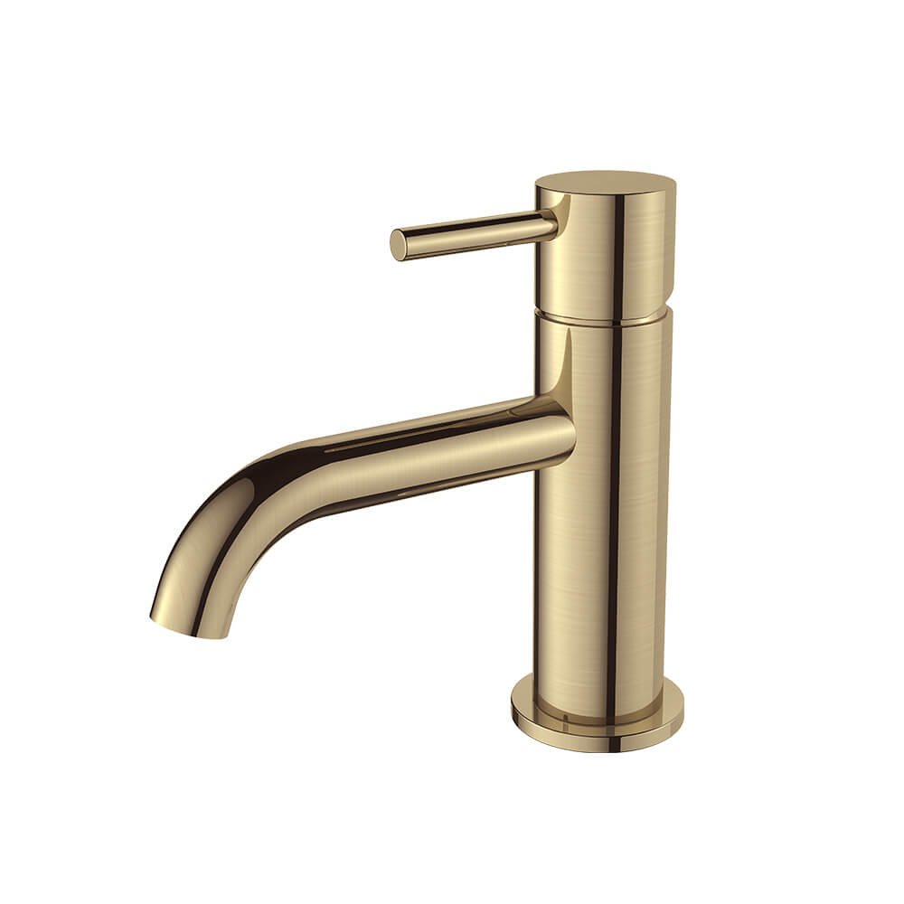 Waarom kiezen voor Regn lage wastafelmengkraan met coldstart, geborsteld goud?