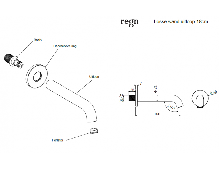 Deze Regn losse uitloop van 18 centimeter in de kleur geborsteld nikkel, is minimalistisch vormgegeven. In de kranen zijn de Scandinavische invloeden terug te zien in de rust en de eenvoud van de verschillende modellen. De uitloop past perfect bij de losse bedieningsknoppen van Regn.