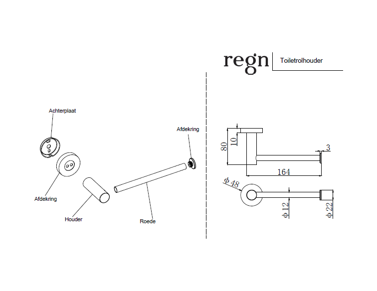 De afmetingen van de toiletrolhouder zijn:ë 4,8 centimeter hoog, 16,4 centimeter breed en 8 centimeter diep. In deze serie zijn diverse sanitair accessoires verkrijgbaar, eenvoudig combineren in dezelfde stijl.Regn: stijlvol en kwalitatief hoogwaardig sanitairRegn is geïnspireerd door de Scandinavische woon- en leefstijl en ontwikkeld door een team monteurs, verkopers en designers met 40 jaar ervaring in de sanitairwereld.