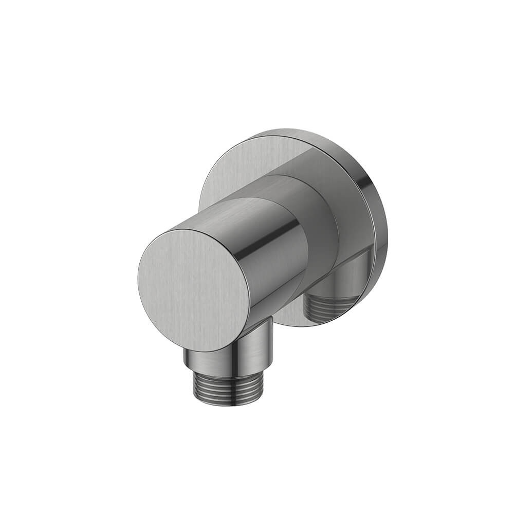 De ronde Regn wandaansluitbocht, uitgevoerd in de kleur geborsteld nikkel, past perfect bij de Regn handdouche in dezelfde kleur. Onderaan zit een wateruitlaat, waar een doucheslang met 1/2"ë aansluiting aan bevestigd kan worden (los bij teë bestellen). Het waterë stroomt dan via de wandaansluitbocht zo de doucheslang in, richting de handdoucheë (los bij te bestellen).