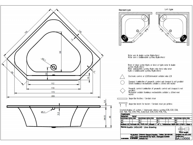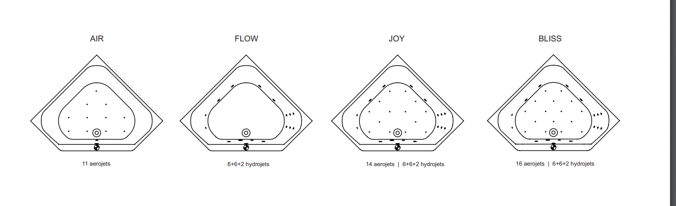 De Riho Austin biedt een grote driehoekige binnenruimte, ideaal voor een klein gezin of koppels. De afgeplatte voorzijde maakt het bad gemakkelijk te betegelen, wat zorgt voor een strakke en moderne afwerking in je badkamer. Dit bad is perfect voor wie op zoek is naar een compacte maar ruime oplossing.