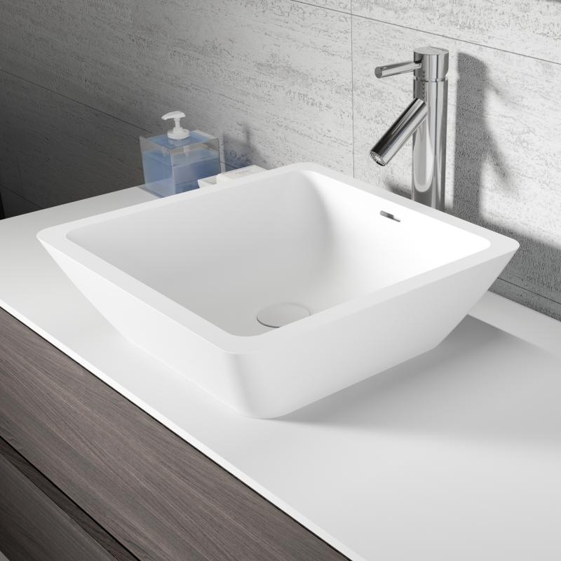 Offerte aanvraag voor Riho Avella Square opzetwastafel vierkant 42x42cm Solid Surface mat wit | Vierkant