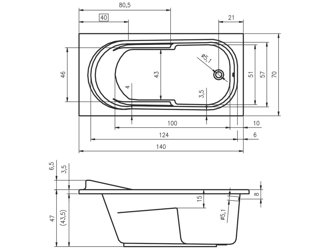 Riho Columbia inbouwbad 140x70cm acryl wit