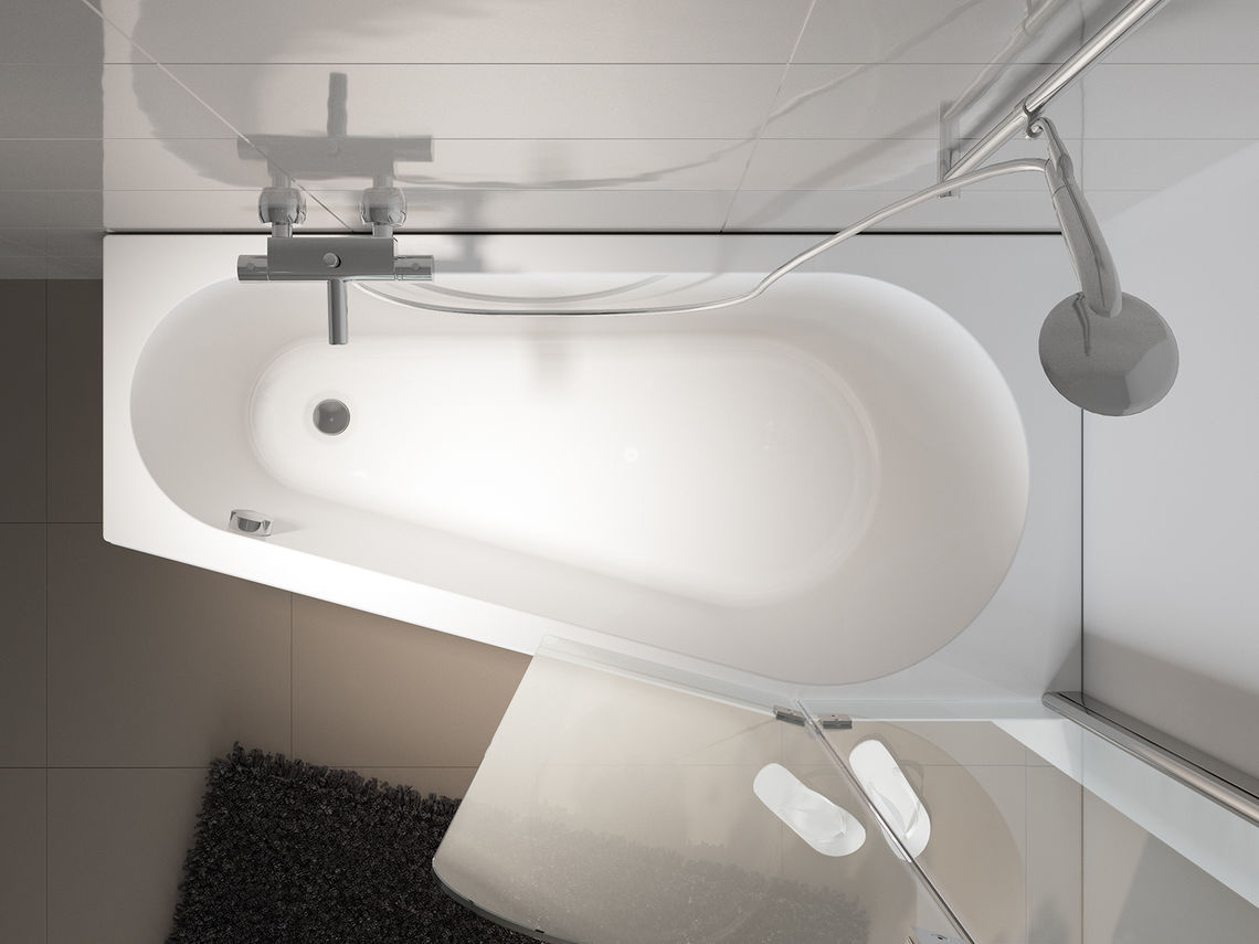 Het Riho Delta inbouw hoekbad combineert stijl met praktische functies. Het verhoogde douchegedeelte zorgt voor efficiënt waterafvoer, terwijl het smalle voeteneinde het bad geschikt maakt voor diverse badkamers. Dit bad is beschikbaar in zowel een linker als rechter variant, waardoor het in elke badkamer past.