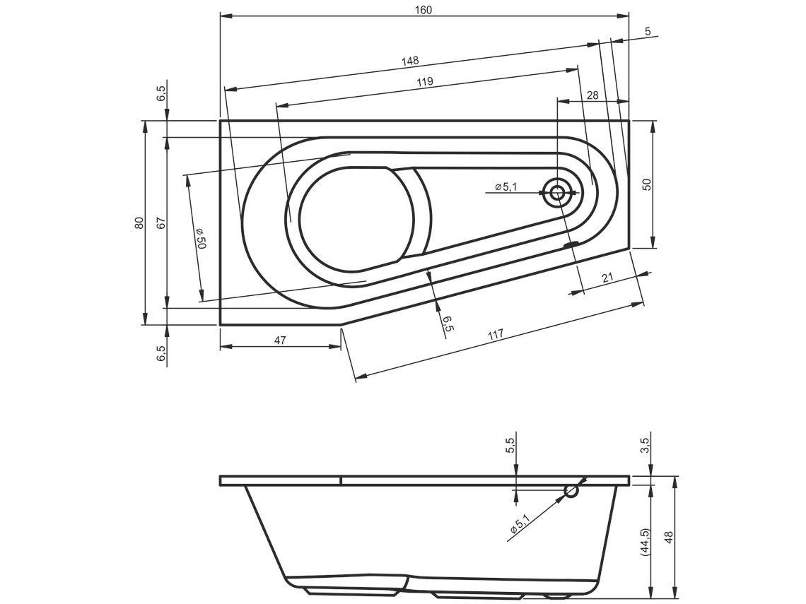 Riho Delta inbouw hoekbad acryl wit | 160x80cm | rechts