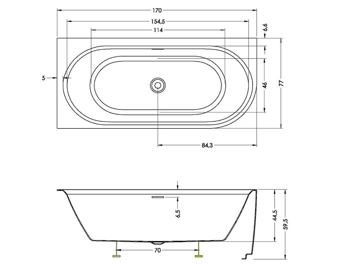 Gemaakt van hoogwaardig acryl, biedt dit bad krasbestendigheid, UV-bestendigheid en een volledig poriënvrije structuur. Kalk en bacteriën hechten slecht, waardoor het bad eenvoudig schoon te maken is. De ovale binnenvorm zorgt voor extra comfort tijdens het baden.