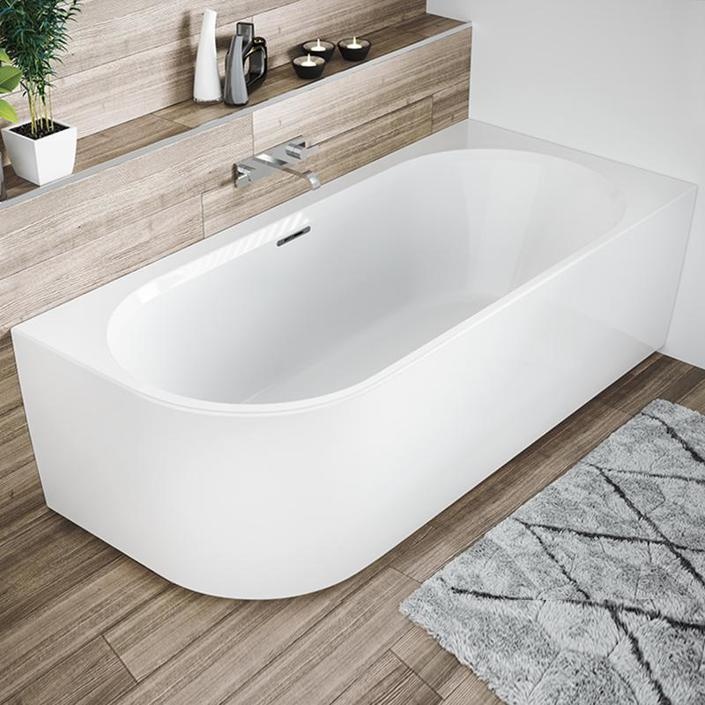 Het Riho Desire Corner halfvrijstaand bad past dankzij zijn stijlvolle gebogen voorkant prachtig in je badkamer. Dit bad combineert een luxe uitstraling met ligcomfort en gebruiksvriendelijkheid, ideaal voor hoekopstelling. De ovale binnenvorm biedt extra comfort tijdens het baden.