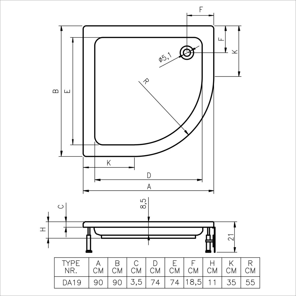 Dankzij het krasbestendige acrylmateriaal is deze douchebak niet alleen duurzaam maar ook eenvoudig schoon te houden. De vlakke structuur voorkomt ophoping van vuil en kalkaanslag, waardoor je douche er altijd schoon en fris uitziet.