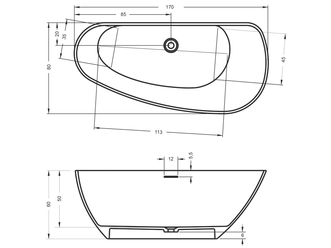 Dit vrijstaande bad is geschikt voor 2 personen en kan naar eigen wens in de ruimte worden geplaatst. De afvoer in het midden zorgt voor extra comfort en flexibiliteit. Het bad wordt geleverd inclusief een pop-up plug met cover in dezelfde kleur als het bad en een sifon voor vrijstaande baden.