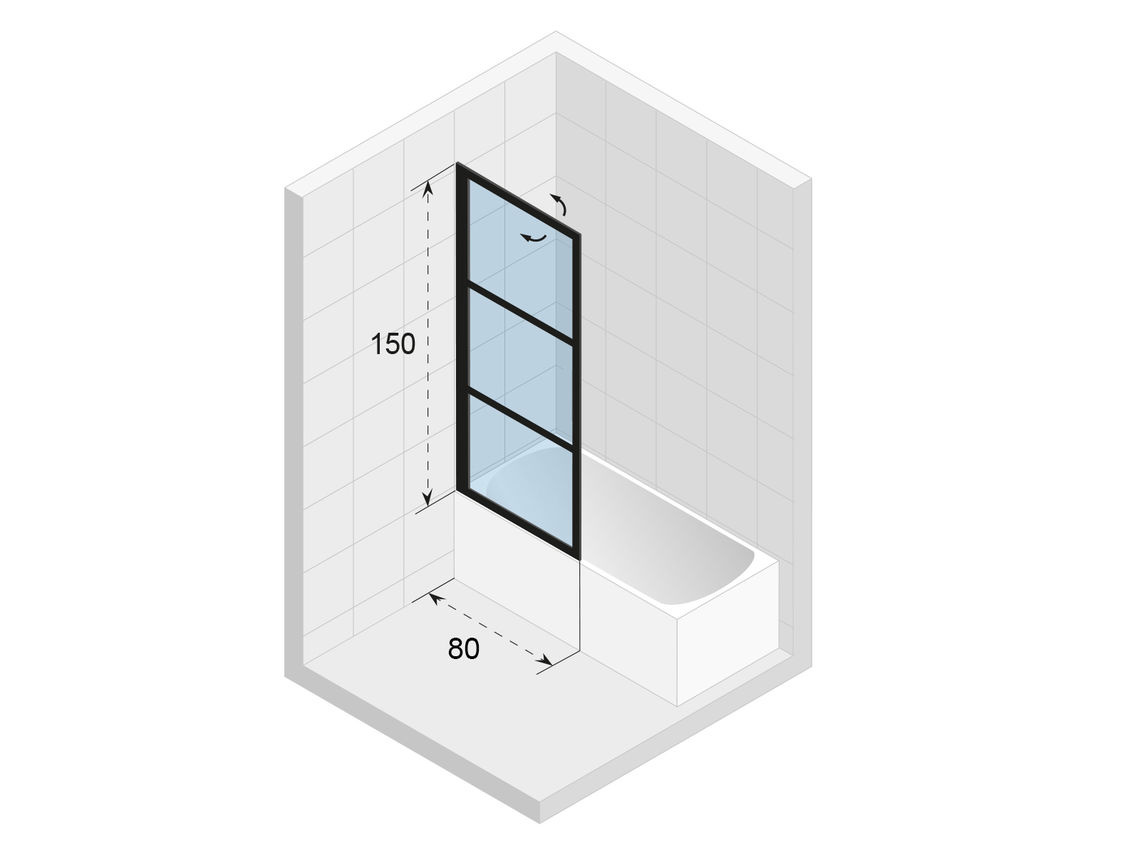Riho Grid GB501 badwand draaibaar 80 x 150 cm met mat zwart profiel - links