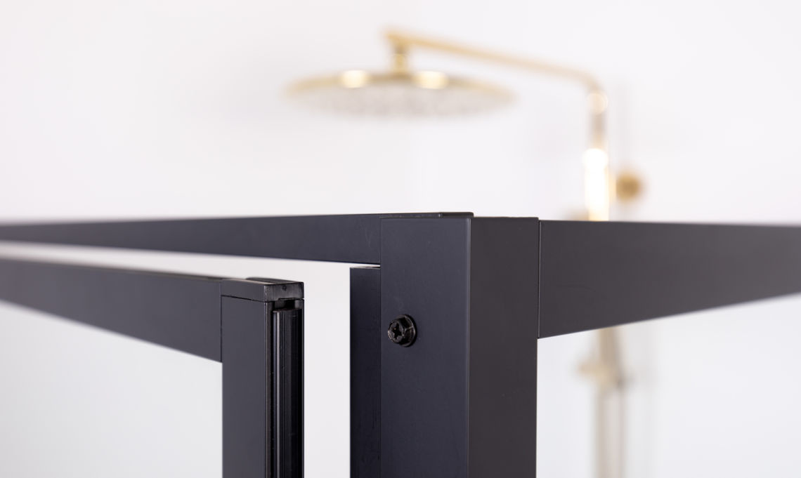 De Riho Grid GB201 douchecabine biedt een ruime douche-ervaring met een industriële touch. De mat zwarte profielen van gepoedercoat aluminium zorgen voor een moderne look en duurzaamheid. Het glas, verdeeld door horizontale metalen stroken, heeft een unieke esthetiek en is makkelijk schoon te houden dankzij de maskerende opdruk aan de binnenzijde.