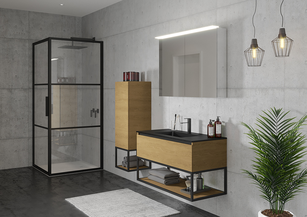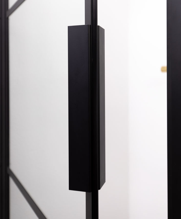 De Riho Grid GB201 douchecabine biedt een moderne industriële uitstraling met zijn mat zwarte profielen van gepoedercoat aluminium. Het glas is verdeeld door horizontale metalen stroken, wat zorgt voor een unieke esthetiek. Aan de binnenzijde is het glas voorzien van een maskerende opdruk, wat het schoonmaken vergemakkelijkt.