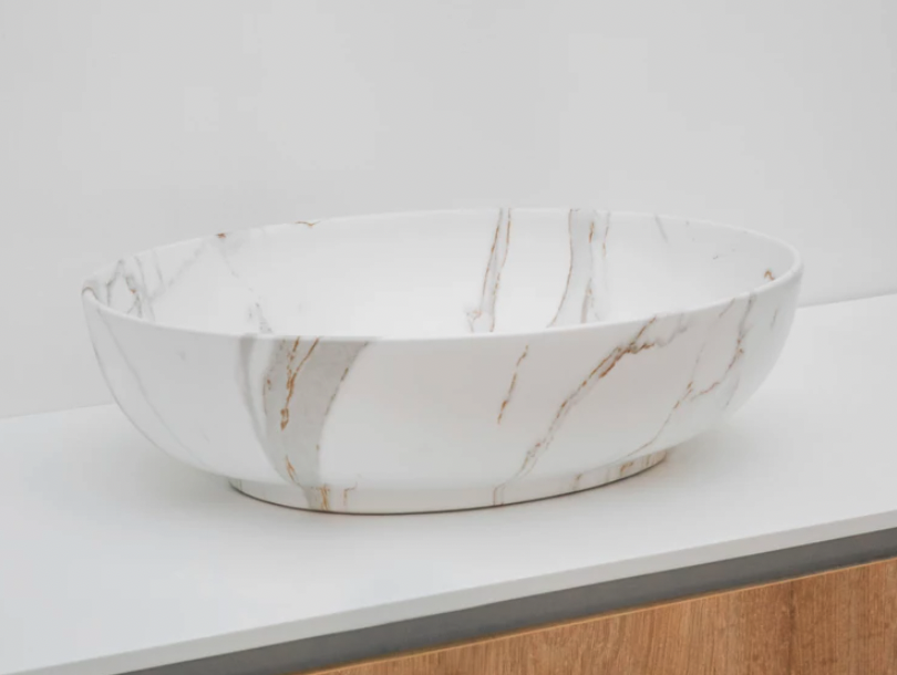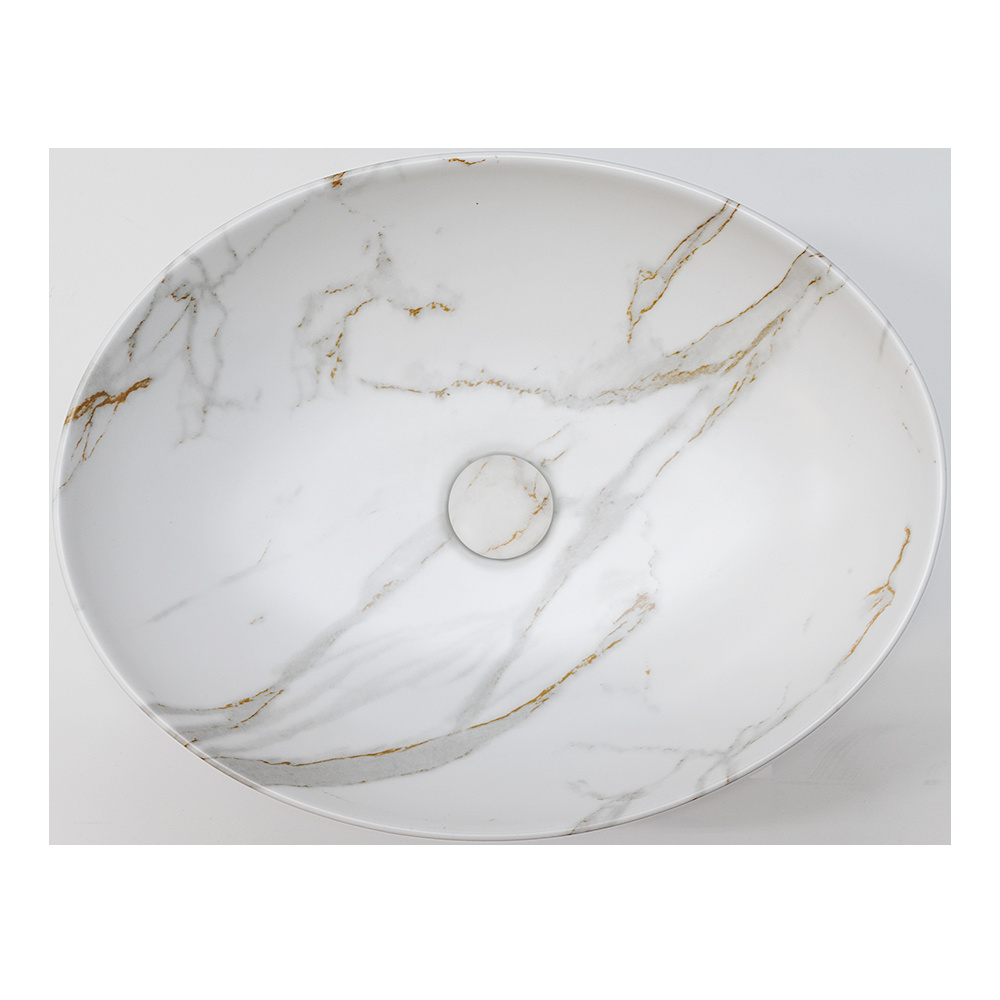 Riho Livit opzetwastafel ovaal 52x40cm keramiek marmerlook | Wit | Ovaal