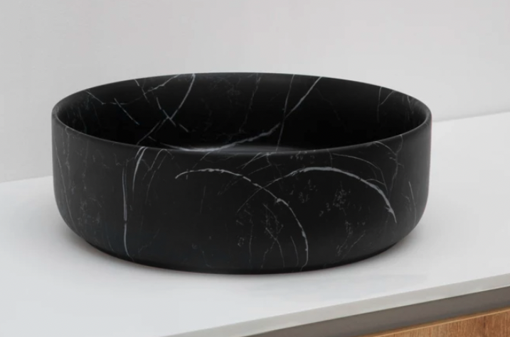 Offerte aanvraag voor Riho Livit opzetwastafel rond 35x35cm keramiek marmerlook | Zwart | Rond