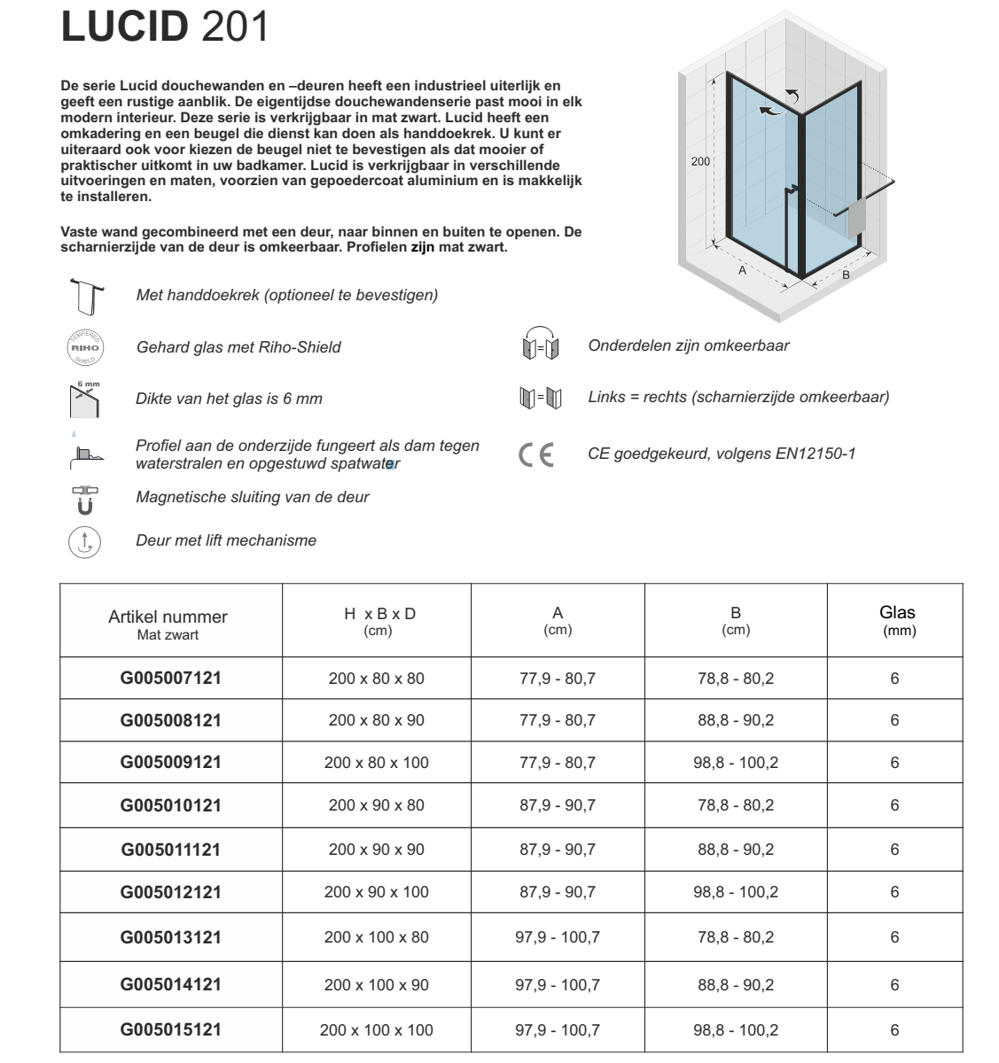 Met de omkeerbare scharnierzijde kan de deur zowel links als rechts geplaatst worden, wat zorgt voor flexibiliteit tijdens de installatie. De magnetische sluiting en het liftmechanisme garanderen een soepele en gemakkelijke bediening. Dankzij het profiel aan de onderzijde wordt spatwater effectief tegengehouden, waardoor je badkamer droog blijft.