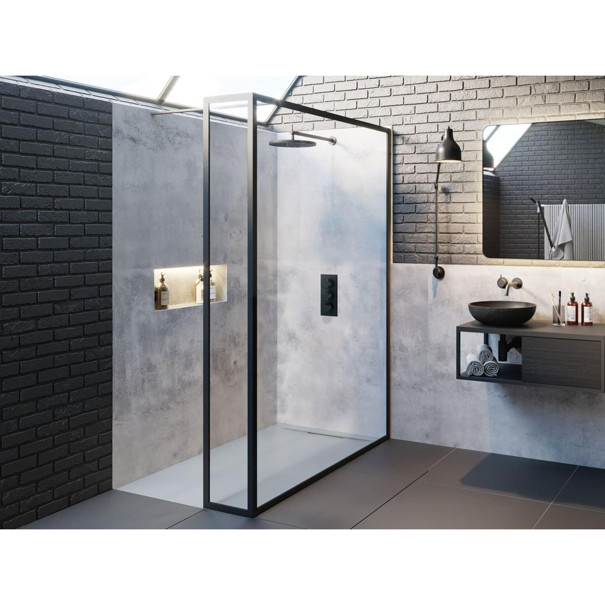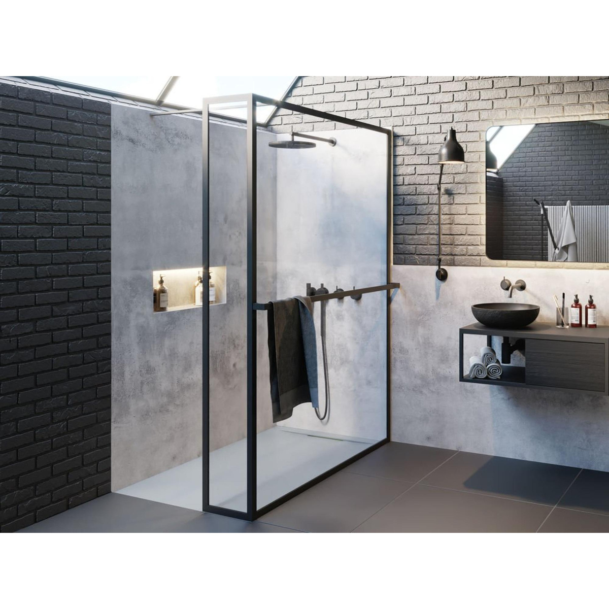 De Riho Lucid 402 inloopdouche biedt een strak, industrieel ontwerp dat perfect past in elke moderne badkamer. Het geharde glas met Riho-Shield en het mat zwarte profiel zorgen voor een eigentijdse uitstraling. De vaste zijwand en optionele handdoekhouder maken het geheel nog praktischer en functioneler.