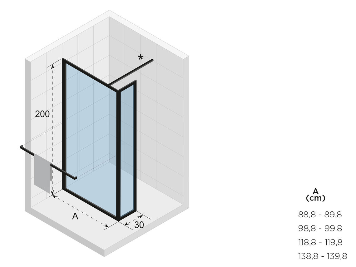 Riho Lucid 402 inloopdouche 100cm met vaste zijwand 30 cm - 100 cm